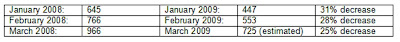 Here is what else is going on with the market: We are on track to be 25% lower than last year. This is Good News for Buyers! In January 2008 there were 645 homes sold. This January there were 447 sold. Sales for 2009 were 31% lower than they were a year ago. In February 2008, 766 homes sold. This February 553 homes sold. In February the sales were only 28% lower than last year. In 2008 there were 966 homes sold in March. This year, there have been 670 homes reported as being sold so far. It is anticipated that this number will increase to 725 by the time all the sold homes are recorded. This will mean that sales are only down 22% compared to last year. Here is that information in a table: