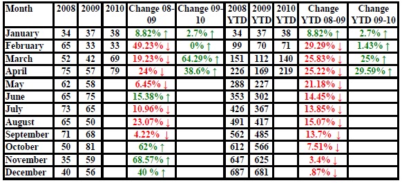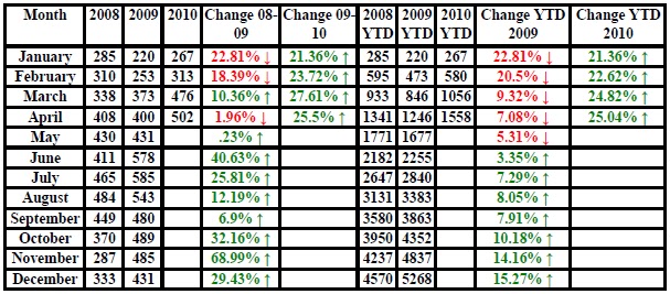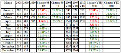 These graphs and statistics show how many homes have been sold each month for the past 3 years. You can clearly see the bottom of the market back in January of 2009. So far we have had over 20% more homes sell this year than at this point last year. For more information about what these statistics mean for your particular situation e-mail me. There are some great opportunities available for this summer!