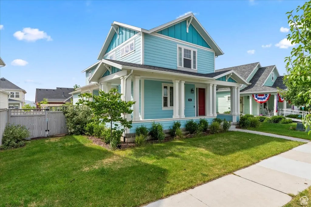 HUG almost a $50,000 price reduction!! Home IS available now for showings!! This impressive two-story wrap around porch farmhouse-style home combines modern design with spacious comfort. Offering 5 bedrooms and a fully finished basement complete with a private theatre room and an additional on-suite. The open-concept main level features clean lines, large windows, and high-end finishes, perfect for both relaxed living and stylish entertaining. A gourmet kitchen flows seamlessly into the bright great room, while upstairs you'll find 4 generously sized bedrooms, including a serene primary suite with a beautiful vaulted ceiling and small loft. Downstairs, enjoy movie nights or game day in the state-of-the-art theatre. With its charming exterior and sleek interior, this home blends classic curb appeal with contemporary luxury.